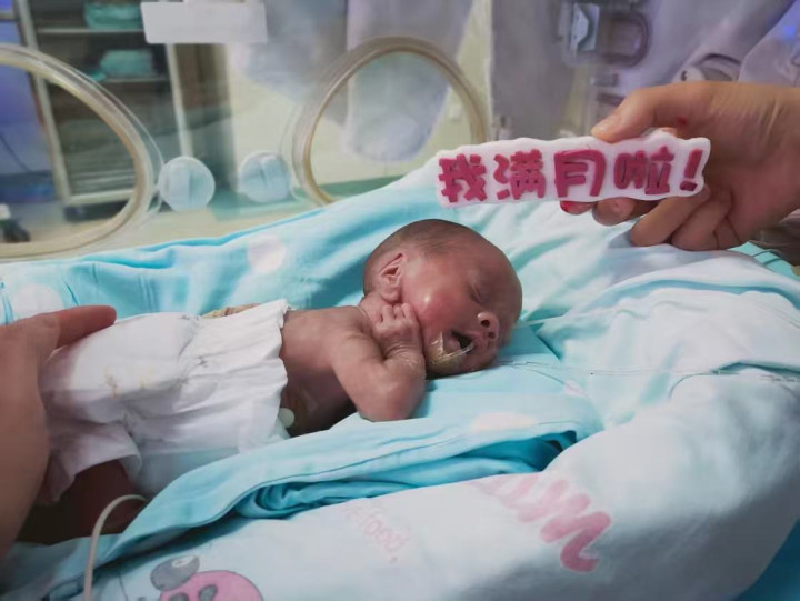 近日,西北妇女儿童医院新生儿科重症监护室里接受捐赠人乳的早产儿满月。 受访者供图